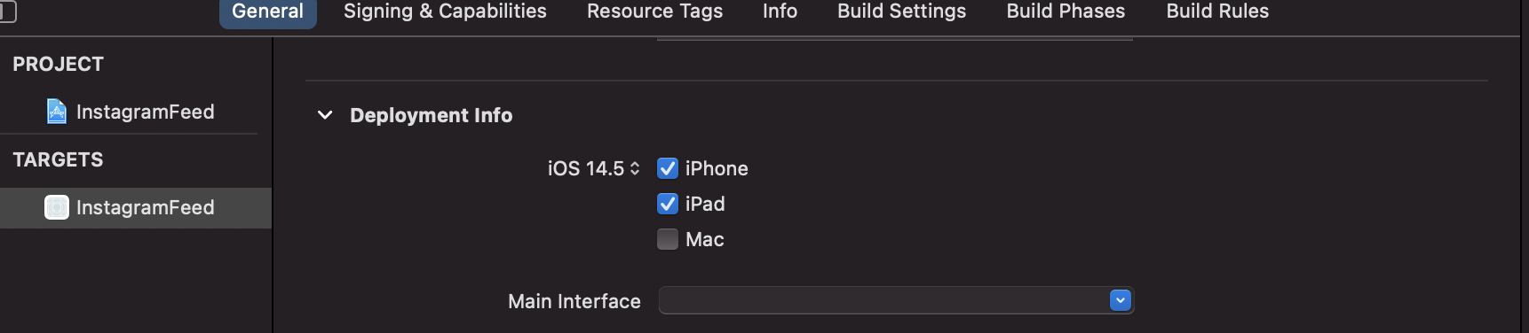 General에 오셔서 Main Interface부분 Main이라고 적힌 걸 지워주시면 됩니다.