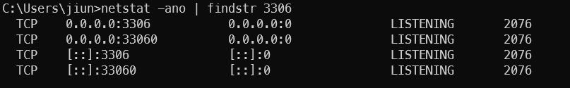 docker: Error response from daemon: Ports are not available: listen tcp 0.0.0.0:3306: bind: Only one usage of each socket address (protocol/network address/port) is normally permitted. 원인 도커로 새 DB를 연동 중 생긴 에러 해당 포트로 이미 실행중이여서 동일 포트로 실행이 불가능. 해결방법 해당 포트로 실행중인 서버를 찾은 후 죽인 후 다시 연동. os : 윈도우 11 $ netstat -ano | findstr 3306 3306포트가 겹쳤으니 3306으로 실행중인 서버를 찾읍시다. PID가 2076입니다. 관리자 권한으로 해당 PID를 죽입니다. 그후 다시 실행해주시면 정상적으로 작동합니다. 카테고리 없음 2022.03.15